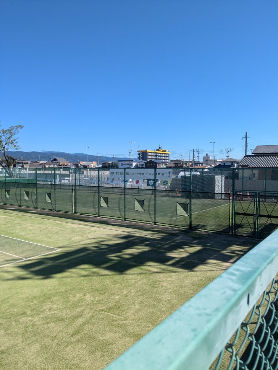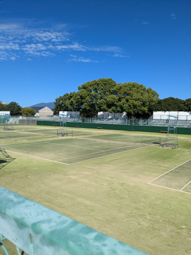 成年男女の会場は佐賀県立森林公園テニスコート(砂入り人工芝8面)